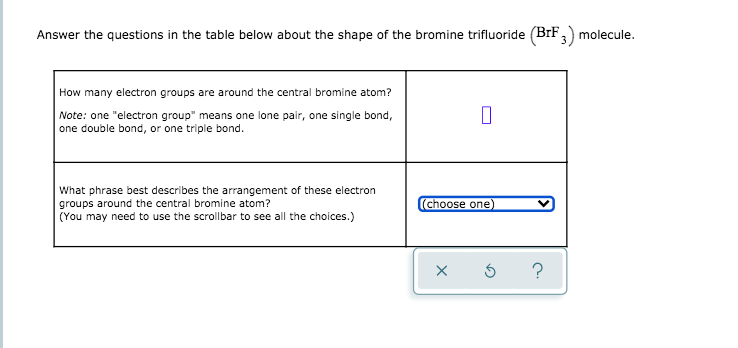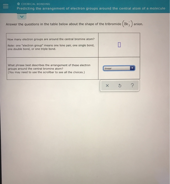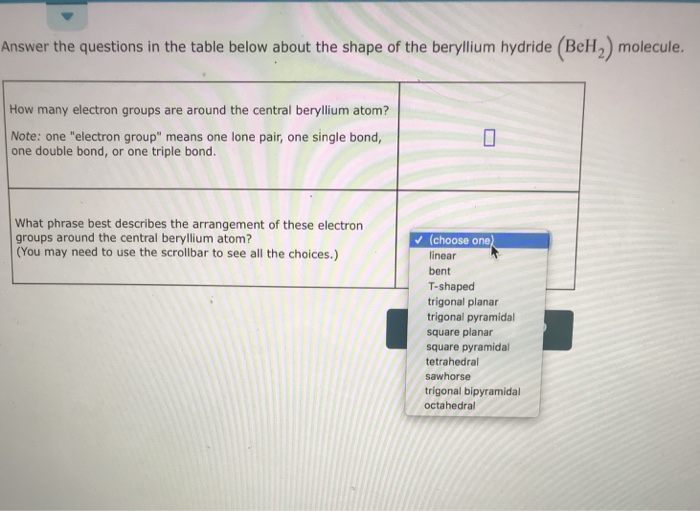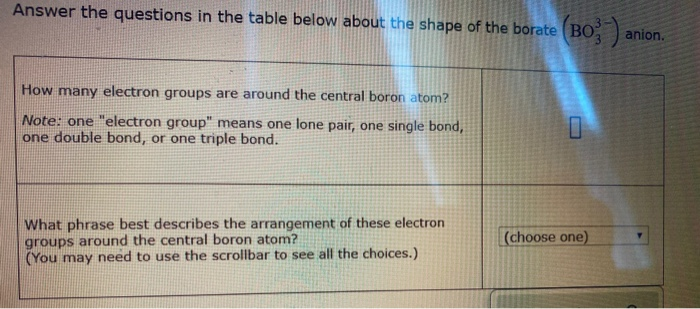 Solved Answer The Questions In The Table Below About The Chegg Com - One electron group means one lone pair, one single bond, one double bond, or one triple bond.