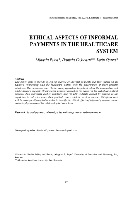 Ethical Aspects Of Informal Payments In The Healthcare System Pitea Mihaela And Liviu Oprea Academia Edu - You must also take the two healthcare administration courses listed below.