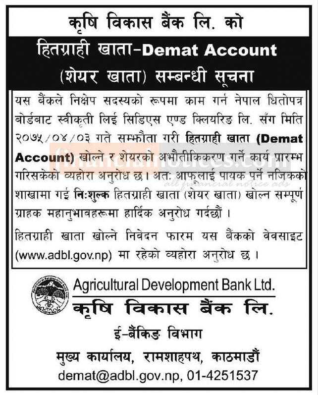 Demat Account Notice Adbl Adbl - Nepal bank limited, kathmandu, nepal.