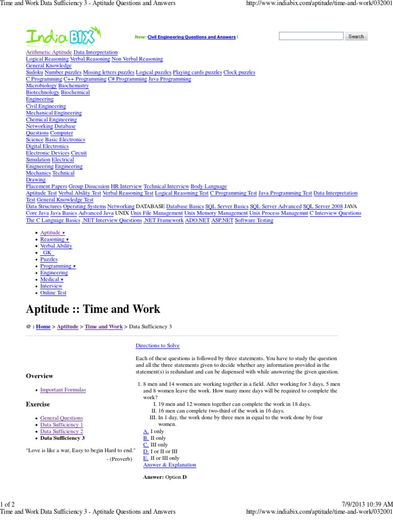 Indiabix Aptitude Time And Work / Indiabix aptitude covers most of the famous topics which mostly asked in different papers.