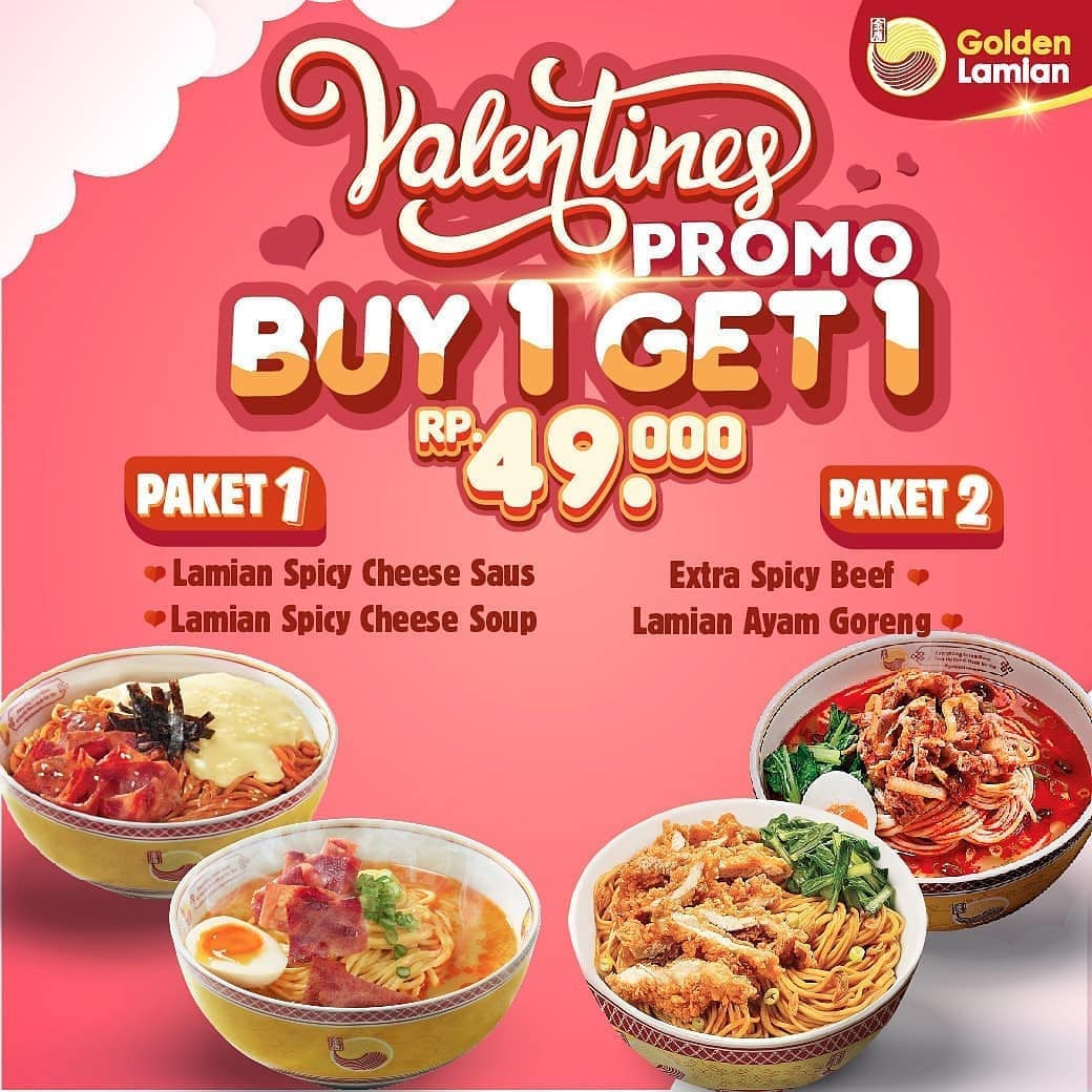 Promo Golden Lamian Terbaru Buy 1 Get 1 Free Hingga 15 September 2018 Harga Diskon - Hingga 14 februari 2020, kamu bisa mendapatkan golden lamian promo valentine beli 1 gratis 1.